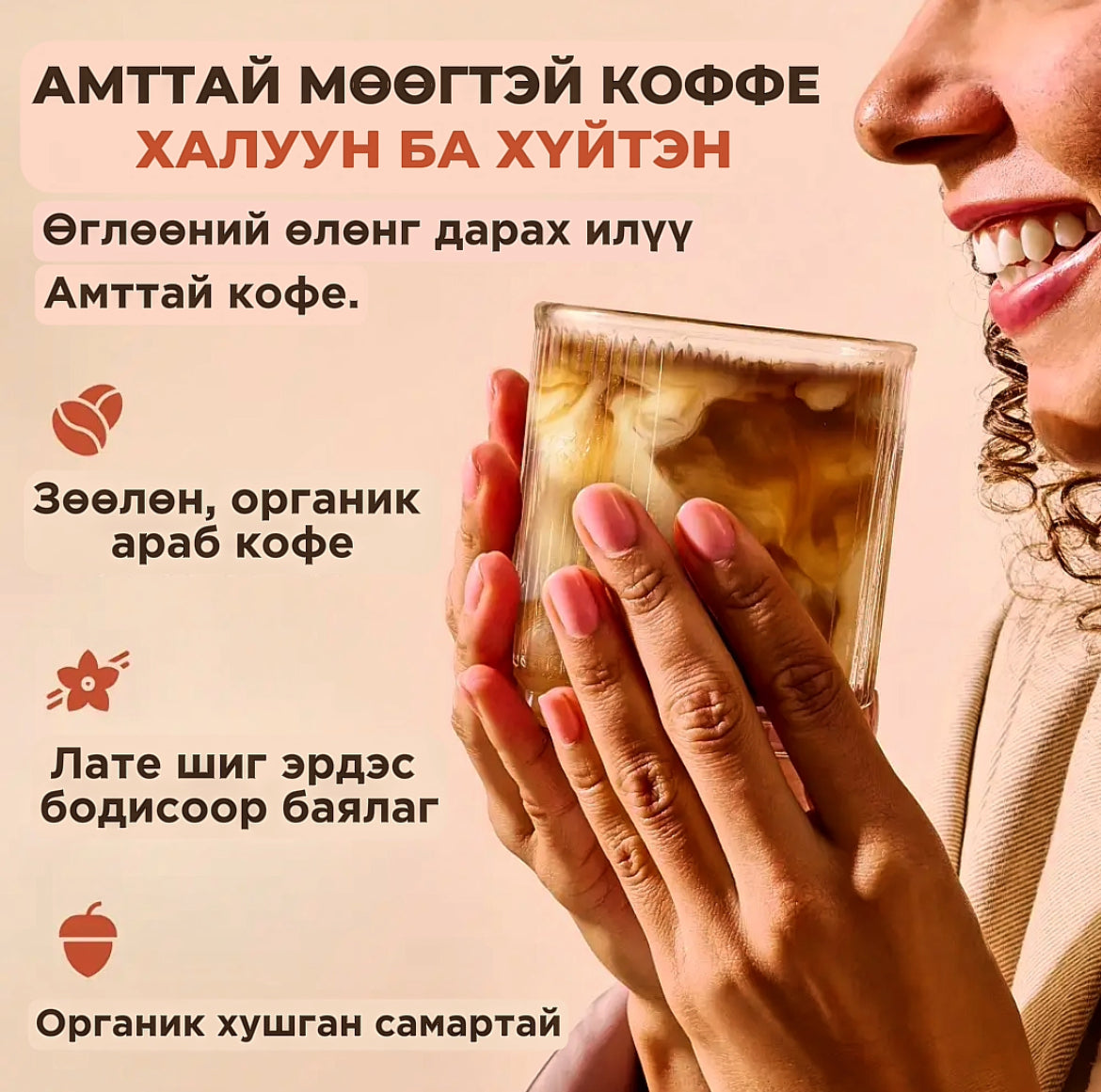 Ердөө 8н цэвэр найрлагатай. Дархлааг дэмжиж, анхаарал төвлөрлийг сайжруулан, бодисын солилцоог идэвхжүүлэх энэхүү кофе нь ажлын карьер болон өдөр тутмын амьдралдаа эрч хүчээр дүүрэн тусалдаг.
